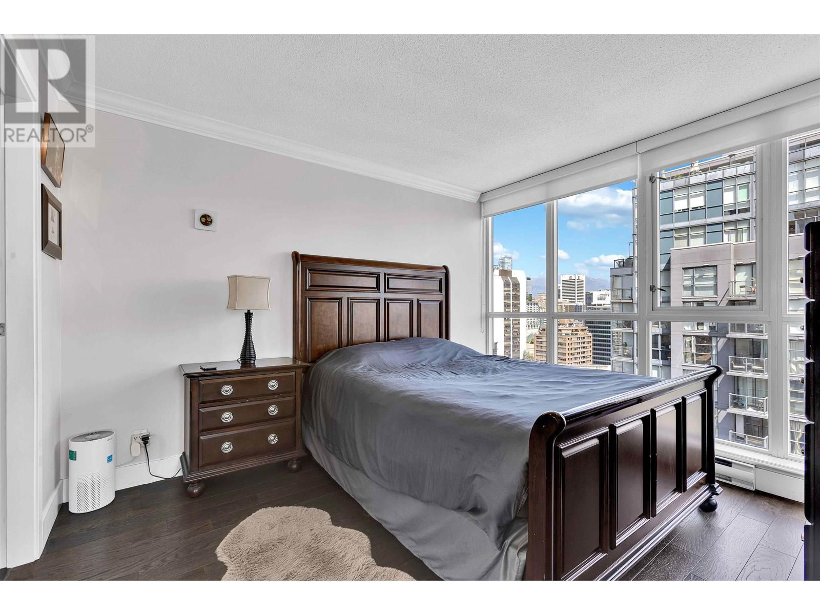 $641.32 MonthlySoaring 24th-floor corner home in Brava 1! This bright 2-bed, 2-bath suite offers 840 sq.ft. of open living with floor-to-ceiling windows showcasing stunning city and peek-a-boo water views. Features include a functional layout, stone countertops, and a private balcony. Steps to Emery Barnes Park, Yaletown dining, shopping, Seawall, and SkyTrain. Enjoy resort-style amenities: outdoor pool, gym, sauna, steam room, guest suite, and 24-hr concierge. Includes parking & locker. Pets and rentals allowed! (id:17816)