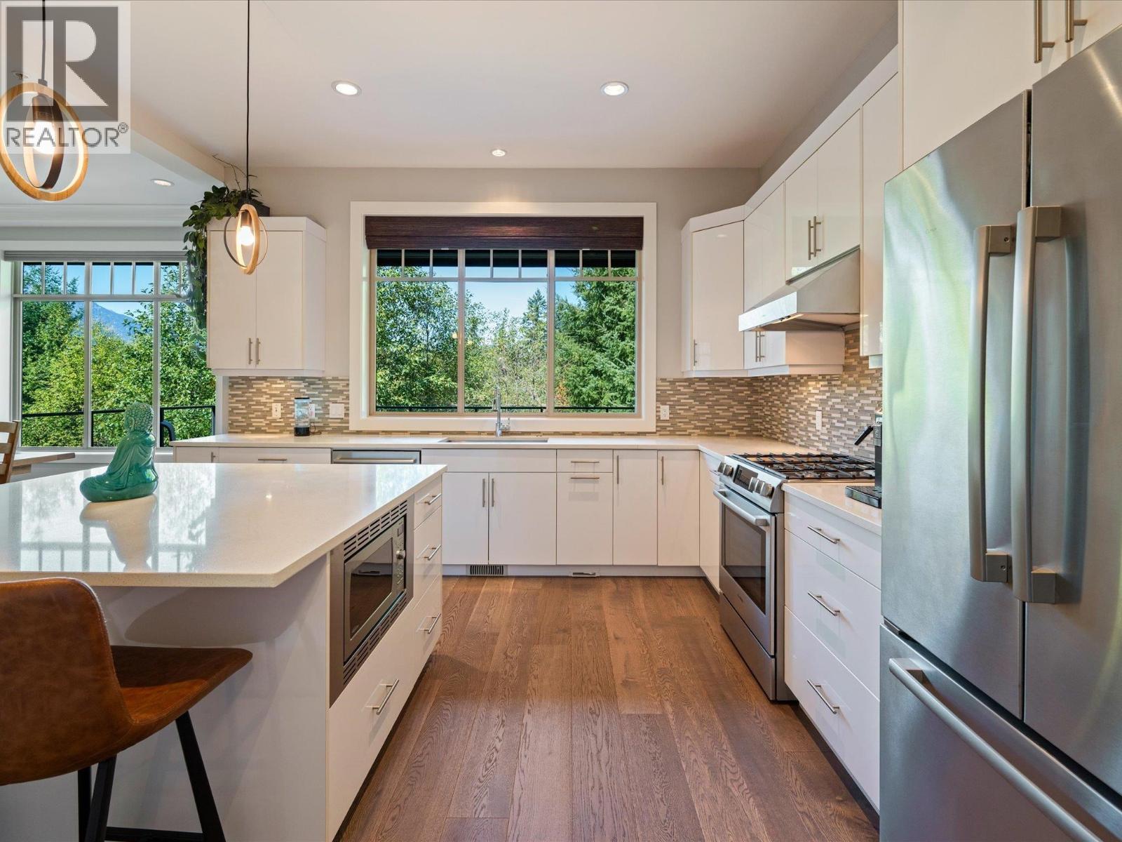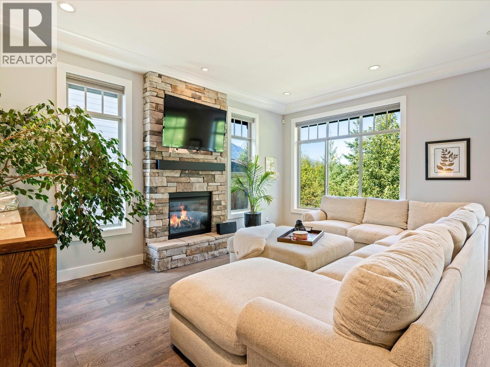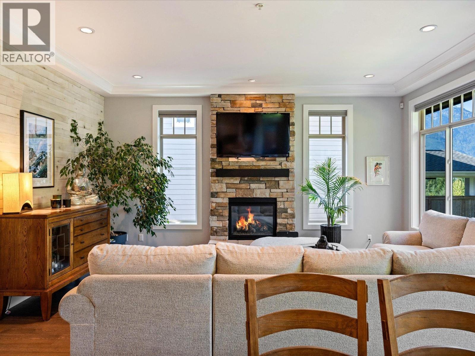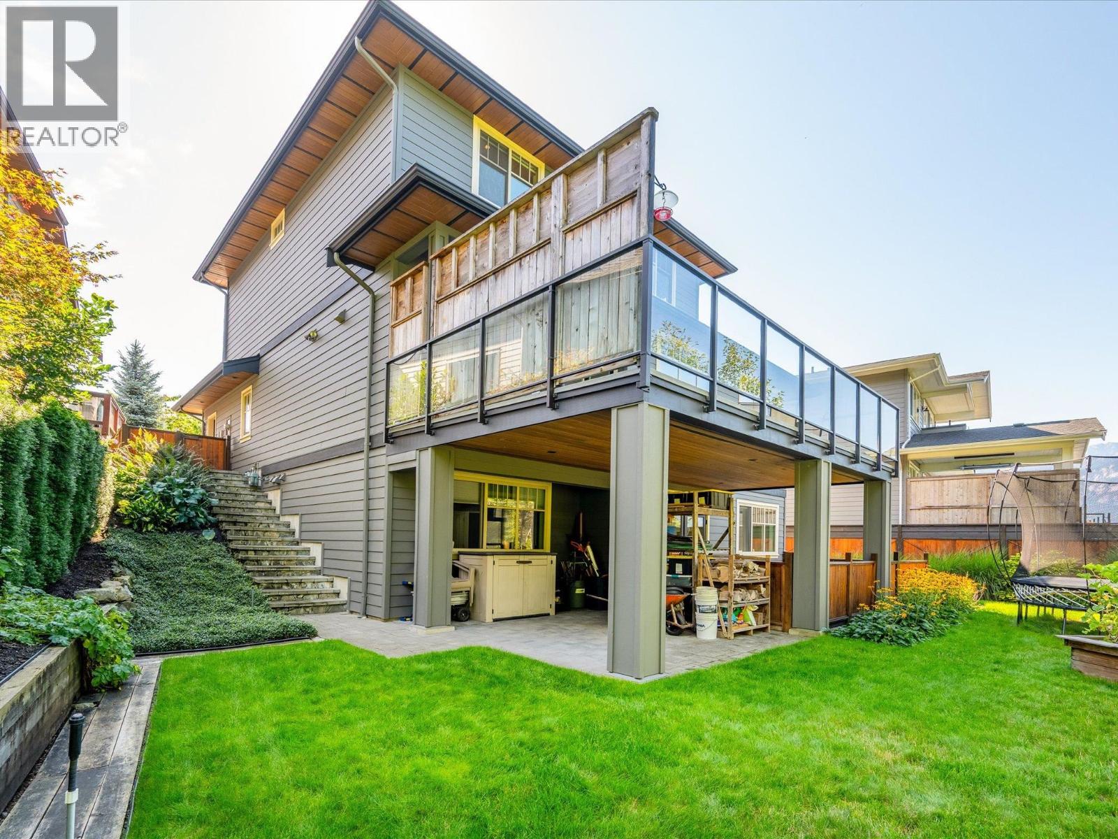 Located on one of the most coveted streets in University Highlands, this elegant 3-level home offers a rare blend of luxury, comfort, and natural beauty. Soaring ceilings and expansive windows frame breathtaking views of the Tantalus Mountain Range, filling the home with natural light. The chef-inspired kitchen features a generous island, walk-in pantry, and premium Bosch appliances-ideal for entertaining or everyday living. A main-floor bedroom and full bath provide flexibility for guests or multi-generational families. Upstairs, the primary suite is a private retreat with panoramic views, a spa-like ensuite, and a spacious dressing room. Two additional bedrooms complete the upper level. The lower level offers a versatile rec room opening to a covered patio, plus an additional bedroom and full bath-with potential to create a private suite. With Squamish´s renowned trail networks and parks just steps away, this home connects luxury living to the outdoors. SHOWINGS BY APPOINTMENT ONLY: Thurs 5-7, Sun 2-4. (id:17816)