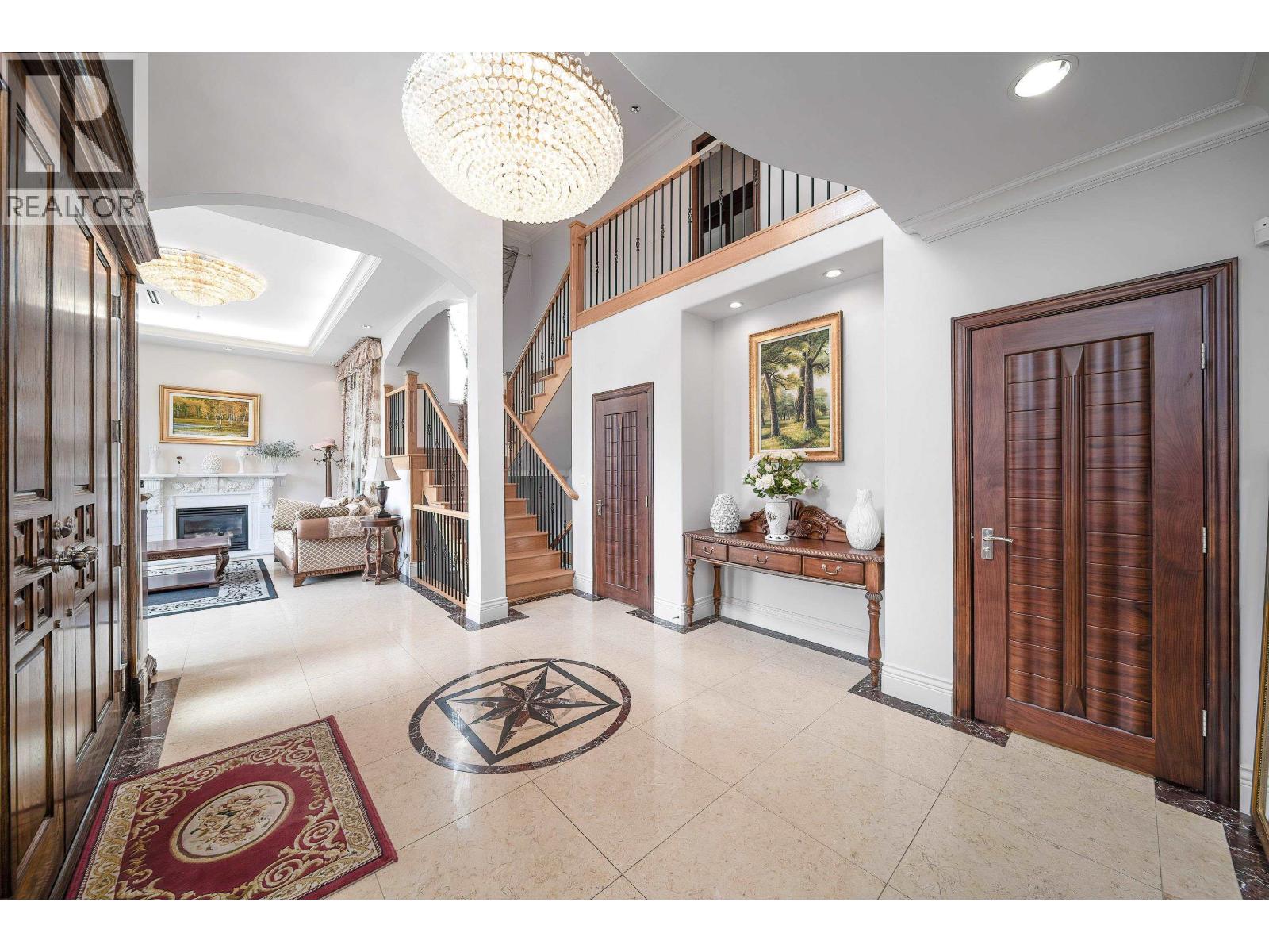 This exceptional European-style luxury home is located in the prestigious Highland SFU area, offering stunning panoramic south-facing views. Thoughtfully designed with exquisite finishes throughout, it features a 9' ceiling on the main floor and a soaring 17' foyer. Marble and hardwood flooring, granite countertops, and 24K gold-plated mosaic glass tile accents in the kitchen and bathrooms add elegance. The home includes an open-concept and wok kitchen, solid oak doors, custom maple cabinetry, and a jacuzzi tub. Crystal chandeliers grace the foyer, living, and dining rooms. Central A/C, security system, crown moulding throughout, and paved driveway and walkway complete this luxurious residence. 4mins drive to SFU and Golf Course-a must-see masterpiece! (id:17816)