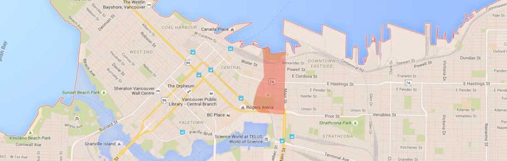 Chinatown in Vancouver, British Columbia, Canada, is Canada’s largest Chinatown. Centred on Pender Street, it is surrounded by Gastown and the Downtown Financial and Central Business Districts to the west, the Downtown Eastside to the north, the remnant of old Japantown to the northeast, and the residential neighbourhood of Strathcona to the east. The approximate street borders of Chinatown’s official area as designated by the City of Vancouver are the alley between Pender Street and Hastings,Georgia, Gore, and Taylor Streets,[2] although its unofficial boundaries extend well into the rest of the Downtown Eastside. Main, Pender, and Keefer Streets are the principal areas of commercial activity.